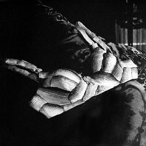 "Gizzard Shad and Brassiere"While the bulk of the images are the still-lifes, Kon introduces 2 elements that threaten to devalue or distract from the successes of her work. The first divergence stems from her inclusion of the human figure in the image. Whether the image is one of the 3 self-portraits or a constructed human, her compositions seem to offer less to the viewer. The challenge, not of identification, but of acceptance is threatened by a visible humanity. A large part of the success of Kon's images, as I have said earlier, lies in her conservative use of materials and composition. This sparse visual technique spills over into the viewers' interpretation and appreciation of the images by the open-endedness of the functions of these objects. The objects themselves suggest a domestic, or at least functional, reading, but this is also due to the absence of the human hand. When the figure is included in the image, the desire of the viewer to place the objects in an everyday, utilitarian setting is denied. The interaction is then spelled out, and closed off to an extent. The second element that struggles with the overall effectiveness of the work is color. The handful of color photographs included repulse, and with no remorse. The brutality of the color, the shocking emphasis on the death of the materials for the object, removes these creations even farther from reality. The lack of subtlety that occurs from the nightmarish color strips these objects of their classical beauty and transforms them into some sort of gothic props. While serving a historical or chronological purpose, the images with color or the human figure hinder the viewer from coming away from this book with an overarching goal or idea.